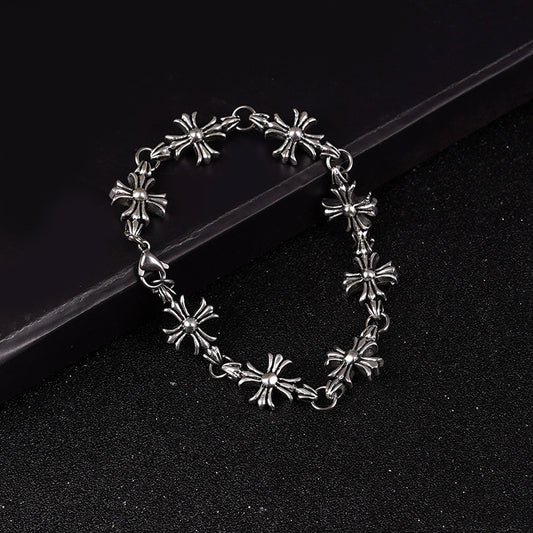 Cross made antique copper silver plated bracelet